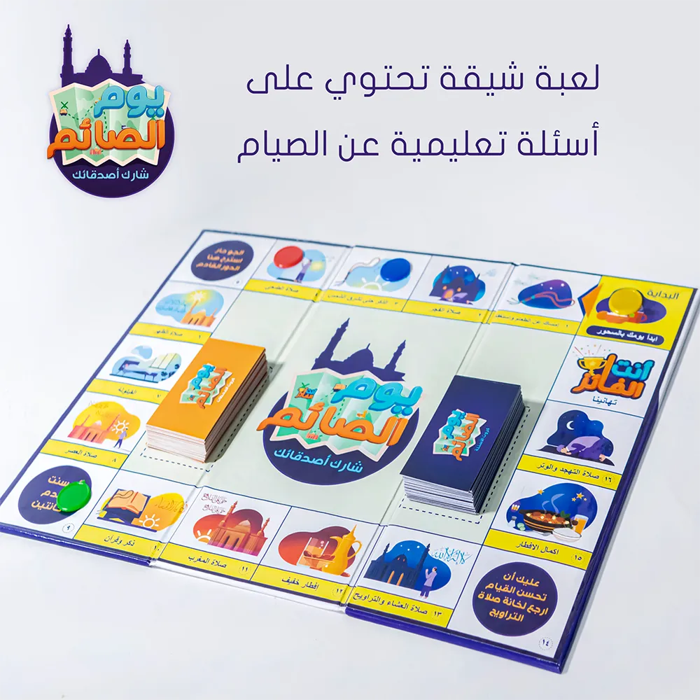 لعبة لوحية جماعية يلعبها لاعبين فأكثر تتكون من 60 كارت مقسمة إلى مجموعتين وسبحة إلكترونية وجدول متابعة يومي للأوراد والصيام بالإضافة إلى عدد 4 فيشات
